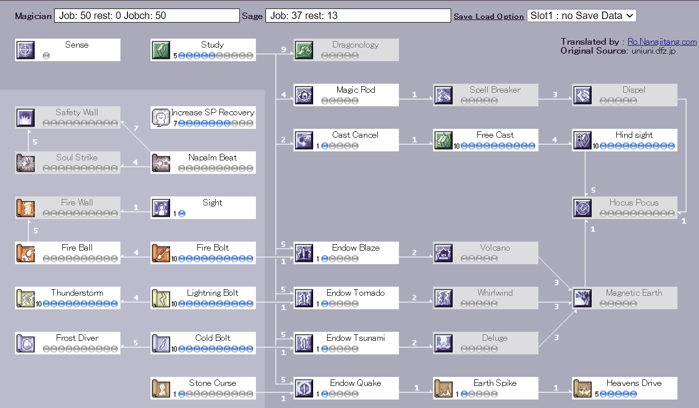 ผมจะแนะนำให้อัพตามนี้ Class 1 จะครบพอดี แต่ตอนเป็น Sage เราจะมี Skill Point เหลือ 13 ให้เลือกลงเองได้เลยตามใจชอบ เพราะตามตารางนี้สามารถใช้ตีศัตรูได้ทั้งหมด แต่มอนกลุ่มจะได้เพียงแค่ ลม/น้ำ เพราะเรามีแค่
